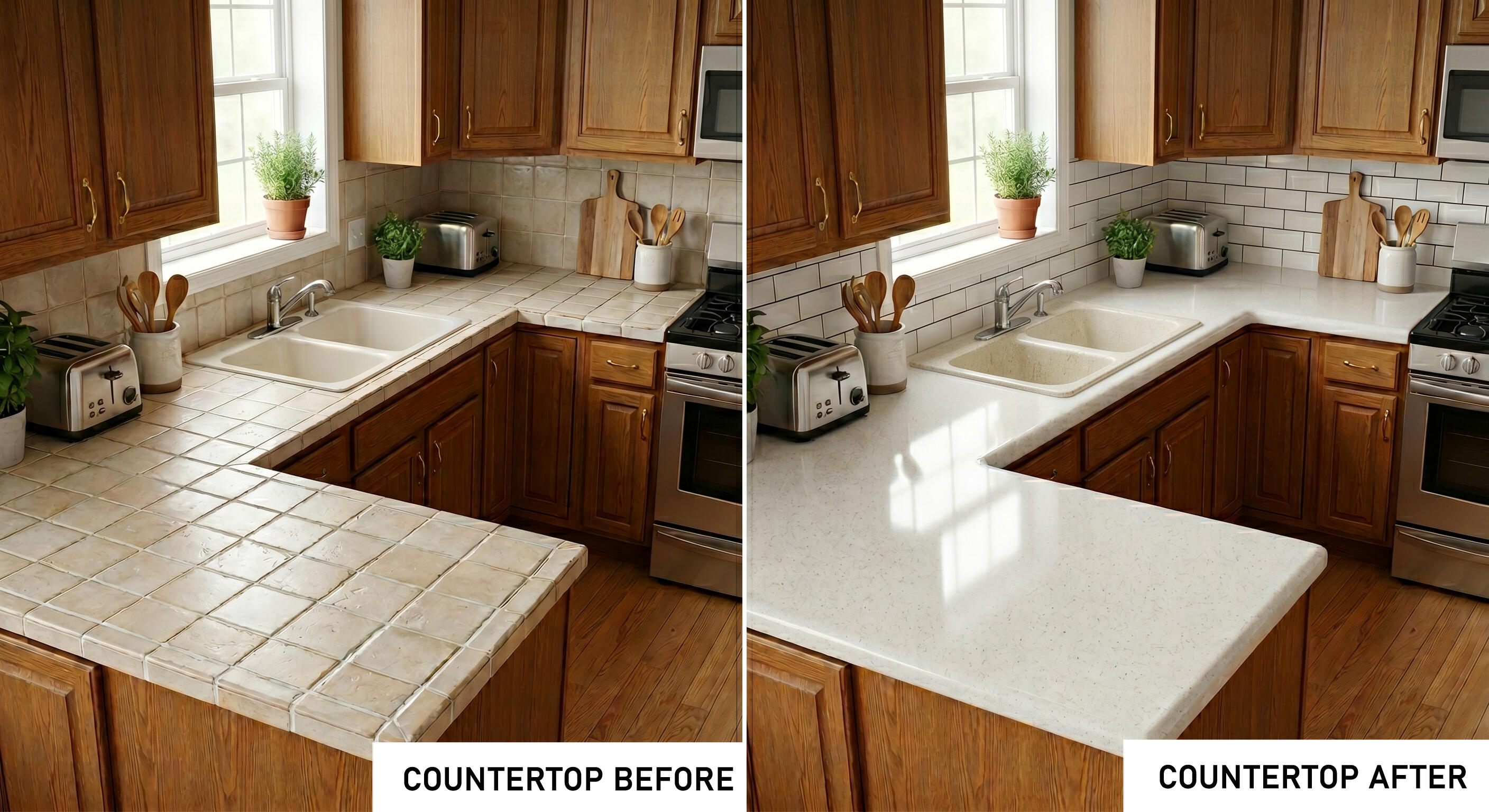 Revitalize multiple surfaces with our resurfacing’s time and cost-saving solutions. Our unrivaled repair and resurfacing process breathes new life into countertops, bathtubs, showers, tile, and cabinets. With our efficient one-day service, we transform your home or apartment with ease.